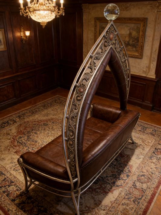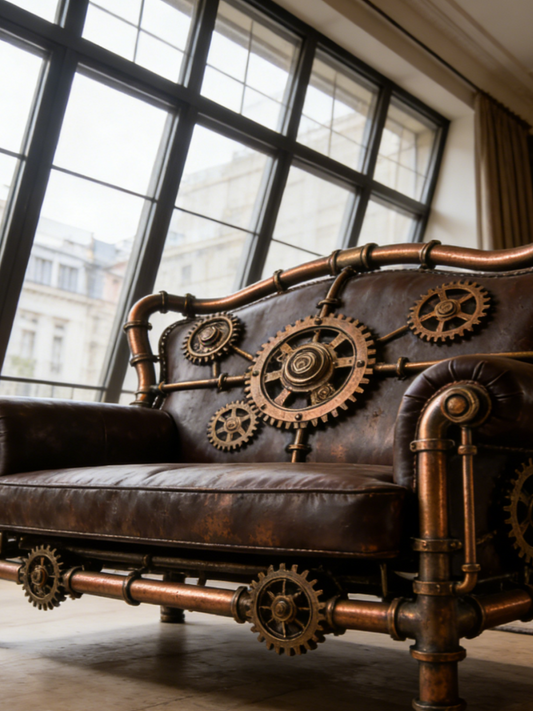Steampunk-Inspired Leather Loveseat | Statement Art Piece for Living Room