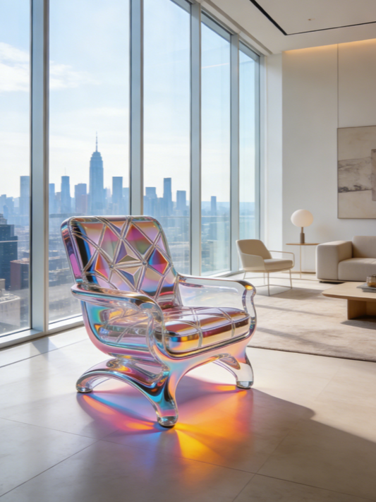 Cyberpunk Iridescent Crystal Chair | Futuristic Transparent Art Furniture