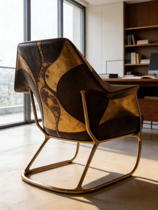 Gilded Leather Art Armchair | Luxury Retro Living Room Lounge Chair