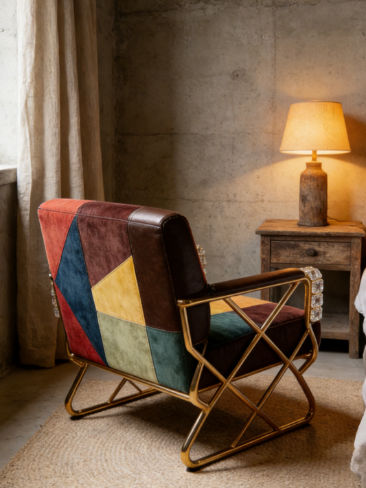 Retro Patchwork Crystal Armchair | Luxury Palace-Style Living Room Lounge Chair
