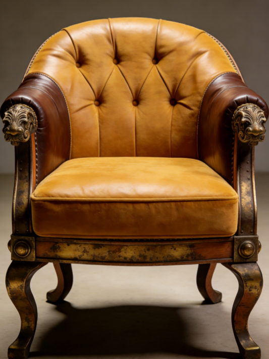 Vintage Lion-Head Leather Armchair | Distressed Luxury Living Room Lounge Chair